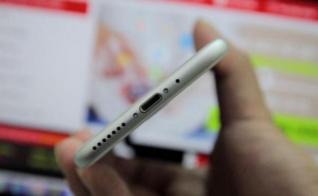 Ở cạnh dưới, cổng tai nghe 3,5 mm đã được loại bỏ hoàn toàn, chỉ còn loa ngoài, cổng Lightning và micro đàm thoại.