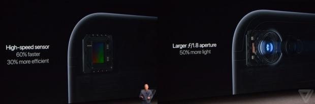 Song hành cùng thuật toán từ nhà sản xuất, cảm biến và khẩu độ lớn là một trong những yếu tố chính quyết định chất lượng ảnh chụp. Và năm nay, vẫn như truyền thống của Apple - không quá chú trọng vào việc tăng độ phân giải camera mà tập trung vào cảm biến với độ phân giải 12MP như cũ, tốc độ nhanh cảm biến hơn 60%, hiệu quả hơn 30% và khẩu độ lớn f/1.8