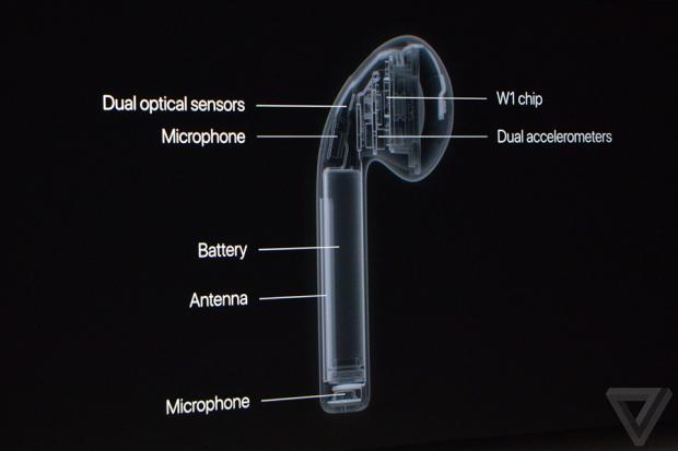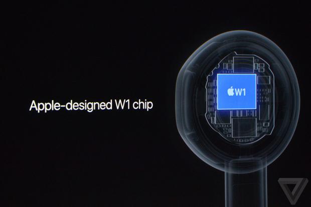 Nói sâu hơn về tai nghe AirPod, Apple đã tích hợp 1 con chip mang tên W1 vào trong sản phẩm này giúp cho việc xử lí âm thanh của tai nghe độc lập hơn và mang lại trải nghiệm âm thanh tốt hơn.