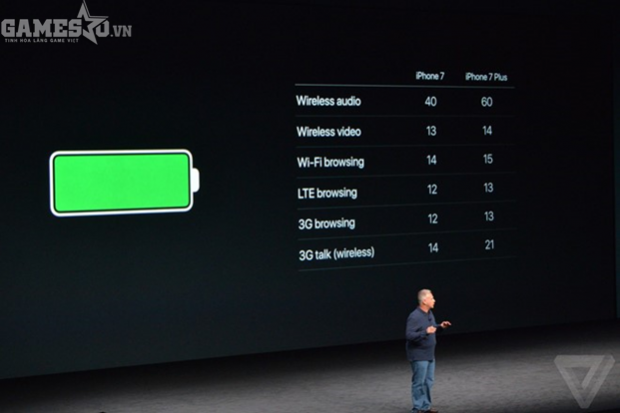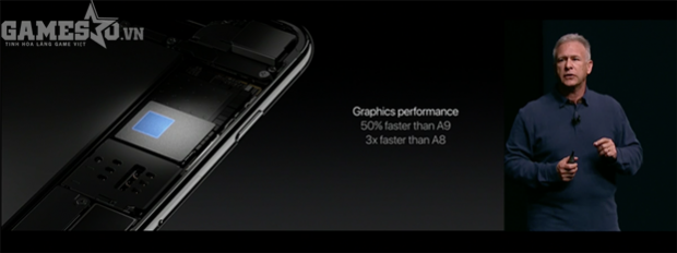Về cấu hình, iPhone 7 sở hữu chip A10 Fusion với 3,3 tỷ transitor, nhanh hơn 40% so với chip A9, gấp đôi A8 nhưng tiết kiệm điện hơn 1/5 so với trước. Sức mạnh xử lý đồ hoạ gấp 240 lần so với iPhone đời đầu. Apple cho biết sức mạnh của con chip này có thể mang đến trải nghiệm chơi game như trên hệ máy console PS4 hay Xbox. Pin của máy cho thời gian hoạt động dài hơn 2 tiếng so với iPhone 6S.