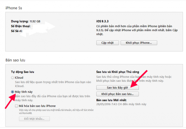 Lưu ý: Kích vào Archive để bản sao lưu hiện tại của bạn không bị ghi đè bởi một bản sao lưu iOS 10 sau khi nâng cấp, phòng trường hợp sau này bạn muốn hạ cấp xuống iOS 9.3.