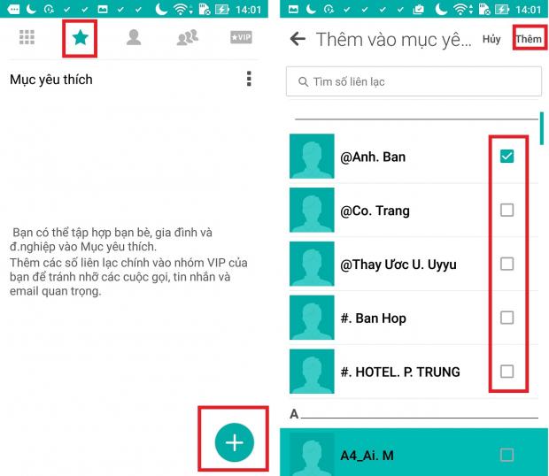 4. Đưa số liên lạc vào danh sách ưa thích