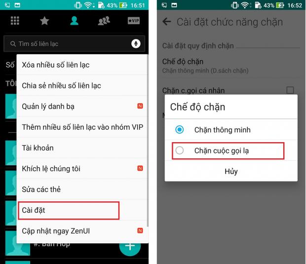 - Cài đặt > Cài đặt cuộc gọi > Cài đặt chặn cuộc gọi > Chế độ chặn > Chặn cuộc gọi lạ.