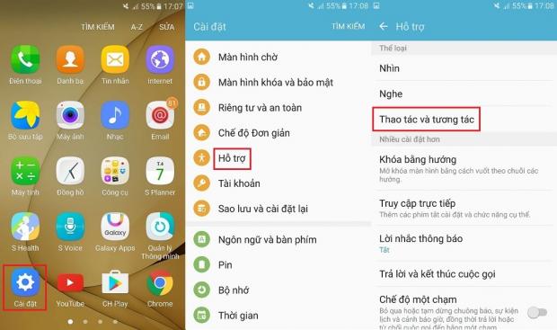 Đầu tiên, các bạn vào mục Cài đặt > Hỗ trợ > Thao tác và tương tác