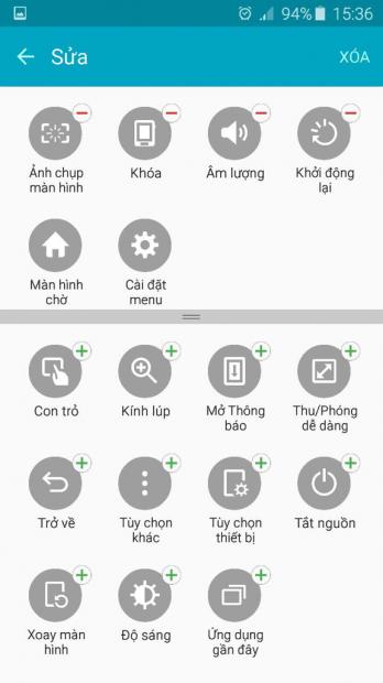 Các bạn cũng có thể thêm hoặc bớt tính năng cho phím Home ảo này ở mục Sửa.