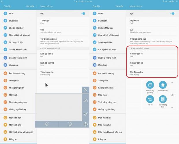 Phím Home ảo trên máy Samsung cũng được trang bị các tính năng hữu ích không thua kém Acssitive Touch của Apple. Ngoài ra, Samsung còn tích hợp thêm bàn rê chuột cảm ứng khá tiện lợi, rất hữu ích trên các phablet màn hình lớn hay máy tính bảng.