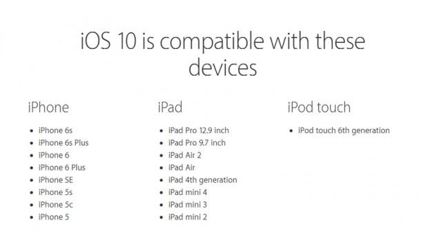 Kiểm tra độ tương thích của thiết bị hay nói cách khác là kiểm tra xem thiết bị của bạn có được hỗ trợ lên iOS 10 không? Đây là một trong những việc phải chuẩn bị đầu tiên vì nó mang tính chất quyết định. Dưới đây là danh sách các thiết bị được hỗ trợ lên iOS 10.