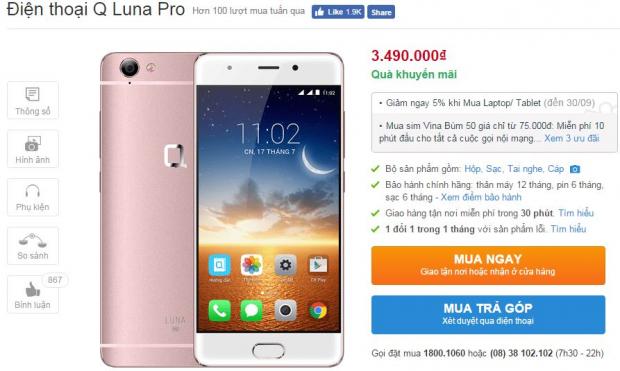 Về cấu hình, LUNA Pro có màn hình 5 inch HD, vi xử lý MT6735 4 nhân, bộ nhớ RAM 2 GB, ROM 16 GB, hỗ trợ 2 SIM, có kết nối 4G cùng pin dung lượng 2.350 mAh. Smartphone này cũng tích hợp bộ đôi camera 5/13 MP trước sau và chạy trên nền tảng Android 6.0 mới mẻ.