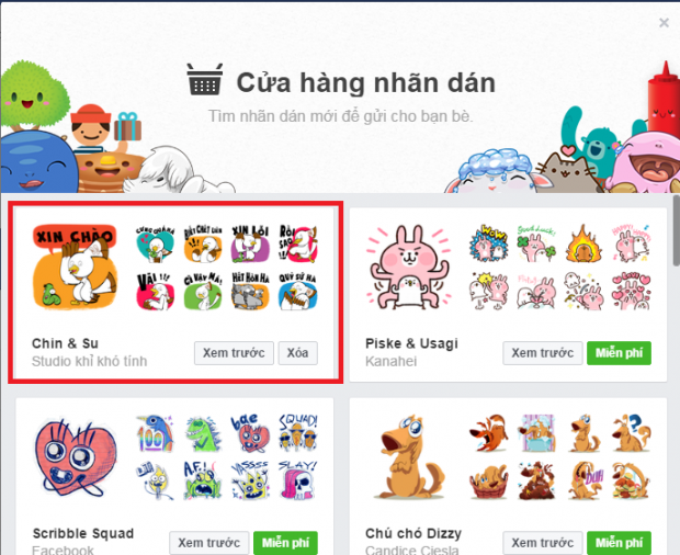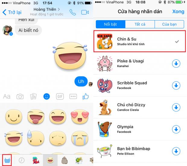 Sau đó vào cửa hàng nhãn dán, tìm bộ sticker Chin & Su và tải về.