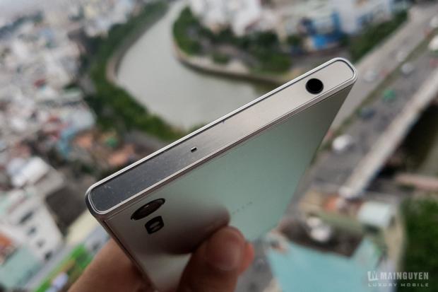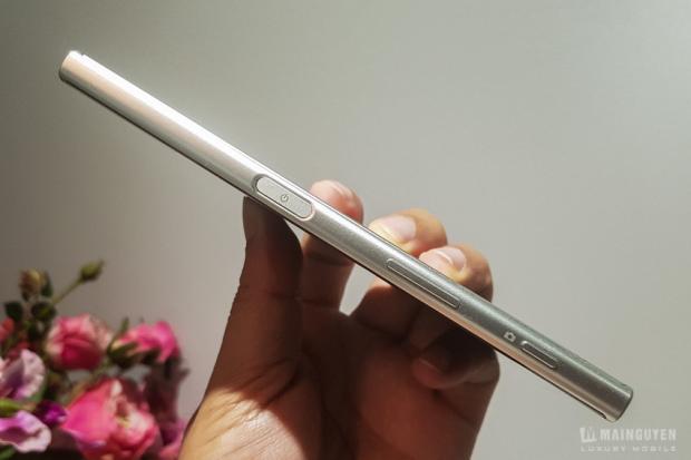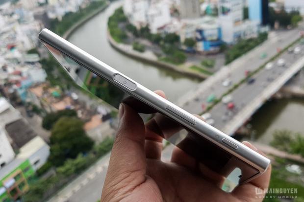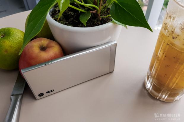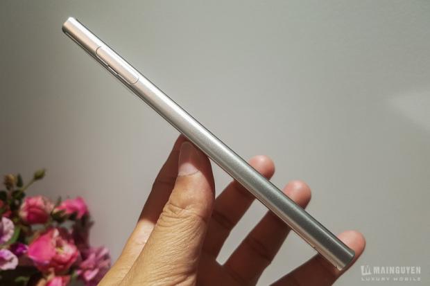 Mình có hỏi thêm thì được cho biết rằng XZ có bộ khung là unibody, các kỹ sư Sony đưa toàn bộ mainboard, camera, màn hình...v.v theo đường dưới máy vào nên máy không có quá nhiều vết cắt và trông cực kỳ liền lạc. Máy chống nước và bụi chuẩn IP68, điều mà mình rất mong đợi ở một chiếc Xperia cao cấp.