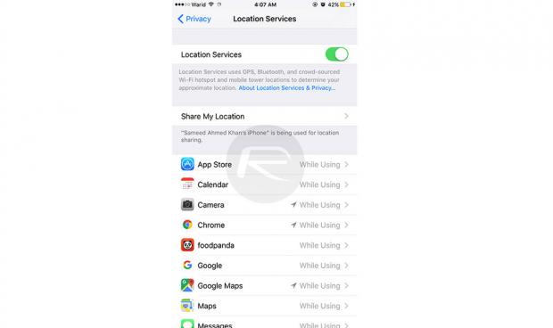 Để kiểm soát các ứng dụng nào đang sử dụng dịch vụ định vị thì bạn hãy truy cập Settings> Privacy> Location Services để xem sau đó bạn có thể chuyển đổi hoặc vô hiệu hóa dịch vụ này cho mỗi ứng dụng cá nhân theo nhu cầu.