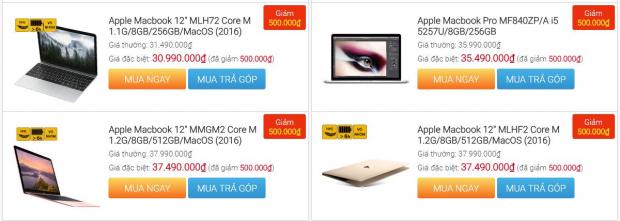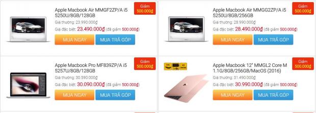 Ngoài ra thì dòng MacBook hầu hết đều được giảm 500 ngàn đồng, chi tiết xem bảng bên dưới: