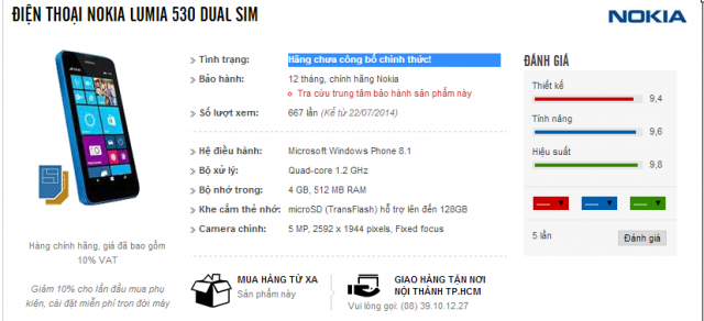 Nếu đúng như những thông tin Lumia 530 bán ra với giá hấp dẫn thì đây sẽ là một tin tốt lành dành cho người tiêu dùng trong nước bởi nó nhiều khả năng sẽ thay thế cho chiếc Lumia 525 hiện bán trên thị trường với sự nâng cấp sáng giá về phần cứng lẫn phần mềm.