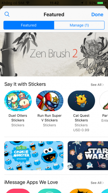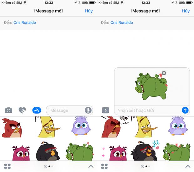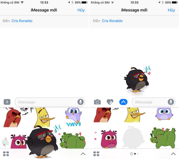Chúng ta có thể thấy Apple đã chăm sóc kỹ lưỡng cho iMessage như thế nào, khi có cả một kho ứng dụng, sticker dành riêng, trông như cửa hàng ứng dụng App Store thu nhỏ. Giờ thì hãy thử tải bộ Stickers Angry Bird nào.