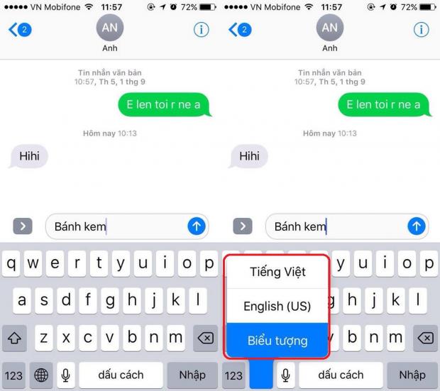Trước tiên, bạn mở ứng dụng iMessage trên thiết bị và gõ nội dung văn bản muốn gửi. Tiếp theo nhấn chọn biểu tượng quả cầu emoji trên bàn phím.