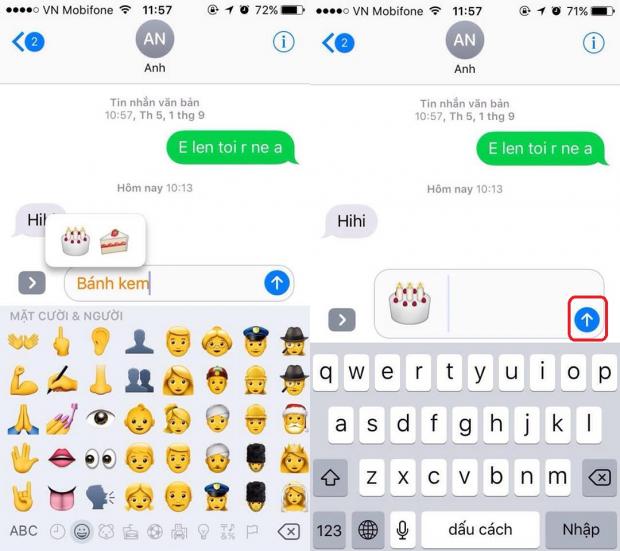 Sau đó, bạn sẽ chọn những từ ngữ muốn chuyển sang biểu tượng emoji rồi nhấn mũi tên màu xanh để gửi.
