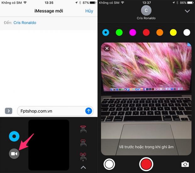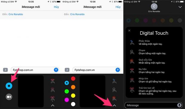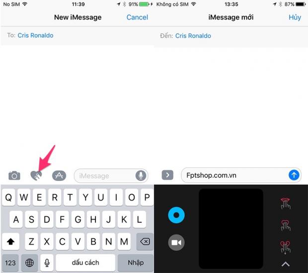 Hãy bấm vào biểu tượng hình trái tim để sử dụng tính năng Digital Touch – tính năng đặc trưng nhất có trên iMessage của iOS 10.