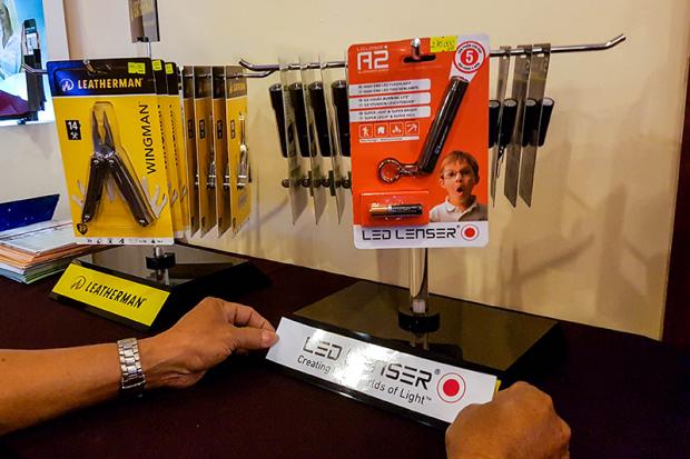 Bên cạnh đó là khu vực nho nhỏ nơi có sự xuất hiện của kềm và đèn pin cao cấp Led Lenser mà Mai Nguyên mới đưa về Việt Nam.