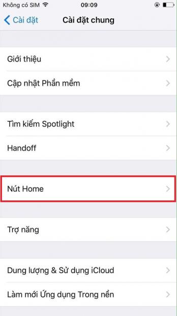 Nhấn và chọn mục Nút Home, tại đây sẽ có 3 mức độ nhạy của nút Home để người dùng lựa chọn.