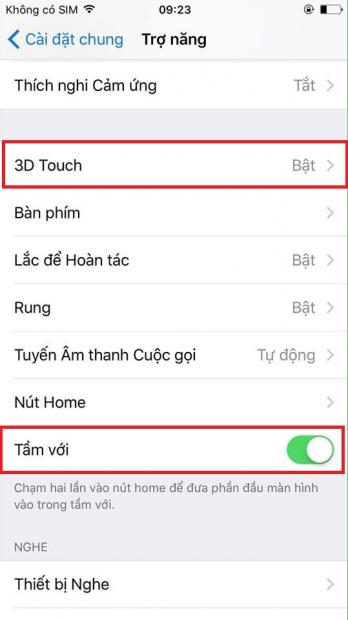 Kéo xuống phía dưới để chọn mục Trợ năng > 3D Touch & Tầm với.