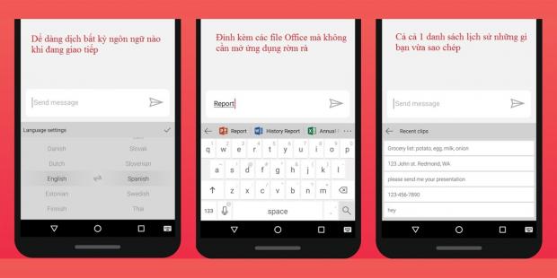 Hub Keyboard có một thanh công cụ nằm ngay trên bàn phím, và khi bạn chạm tay lên các biểu tượng ở thanh này, bạn có thể truy cập nhanh vào dữ liệu nói trên mà không cần phải mở ứng dụng khác.