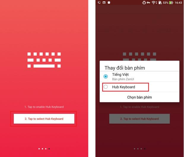 - Sau đó Back lại ứng dụng chọn tiếp vào 'Tap to select Hub Keyboard' > Chọn Hub Keyboard.