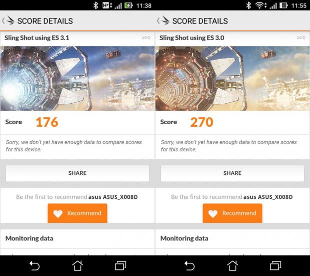 Cuối cùng, với ứng dụng 3DMark dùng để đo khả năng xử lý đồ hoạ. Với phép thử SlingShot 3.1, Zenfone 3 Max được 176 điểm, còn SlingShot 3.0 là 270 điểm.