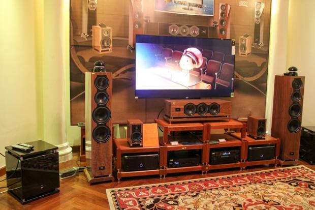 Phòng phim tham chiếu Dolby Atmos sử dụng toàn bộ hệ thống loa của Elac với cấu hình 11.2.4 kênh âm thanh surround được đánh giá là giải pháp nghe nhìn gia đình hoàn chỉnh nhất. Kết hợp với bộ Pre processor, power tham chiếu Yamaha CX-A5100 và MX-A5000, hệ thống này có giá trên 1 tỷ đồng.