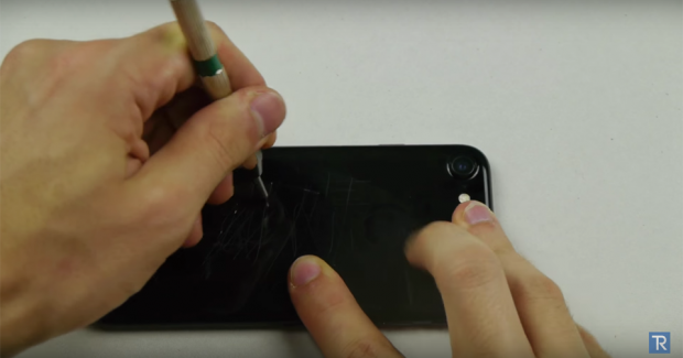 Trong bài thử nghiệm thứ nhất, TechRax sẽ sử dụng một chùm chìa khóa lớn và thử nghiệm bằng cách thả cho rơi vào iPhone 7, cũng như dùng đầu chìa khóa để mài vào mặt sau của máy. Bài thử nghiệm này khá cơ bản khi thường ngày chiếc điện thoại của chúng ta sẽ luôn phải tiếp xúc với chìa khóa ở trong túi, balo hay giỏ xách. Kết quả cho thấy máy vẫn bình thường và không hề bị trầy dăm.