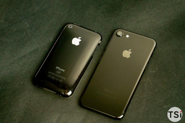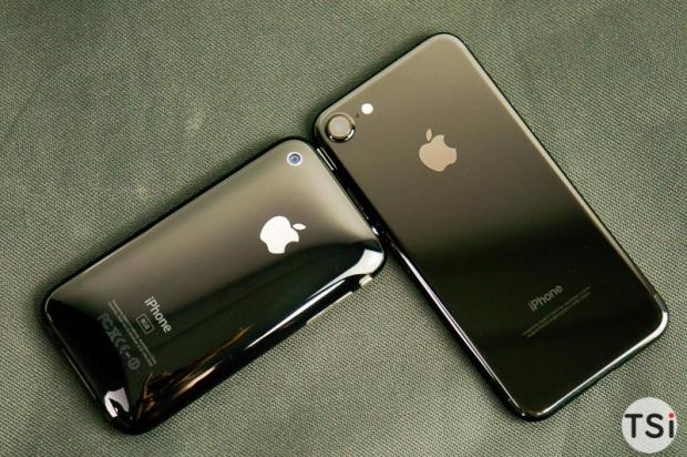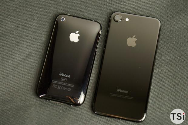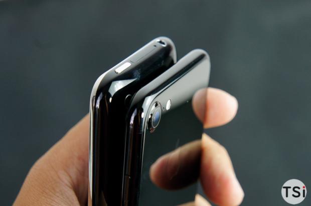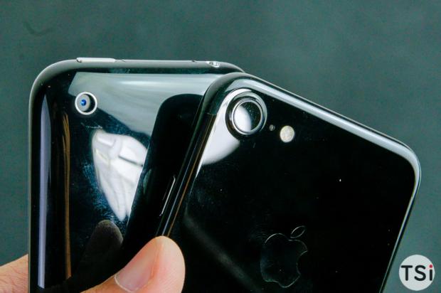 Như các bạn có thể thấy, ngoài ngoại hình vuông vức hơn thì mẫu iPhone Jet Black có màu sắc cũng bóng bẩy tương tự như đàn anh từ năm 2008. Thậm chí iPhone 3G còn bóng hơn, camera nhỏ gọn, không hề lồi ra.
