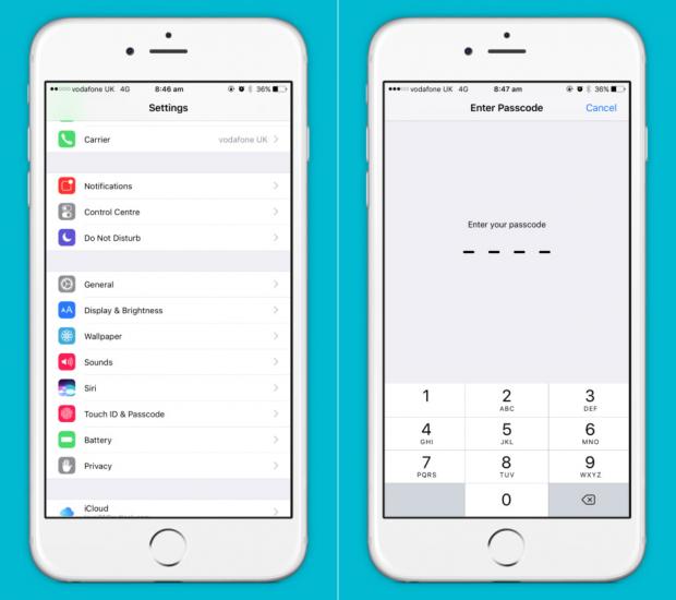 Bước 2: Tìm đến và chọn Touch ID & Passcode.