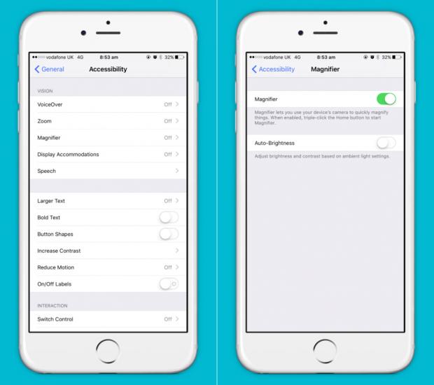 Bạn có biết rằng chiếc iPhone của bạn có thể trở thành một chiếc kính lúp kĩ thuật số nếu bạn đang xài iOS 10. Tính năng này giúp bạn có thể phóng to văn bản trên giấy hoặc những đối tượng nhỏ. Nó cực kì dễ sử dụng khi thiết lập. Tất cả những gì bạn làm là bấm liên tục 3 lần nút Home. Để sử dụng chúng ta thực hiên theo các bước: