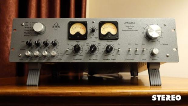 Pre hi-end Spettro của Mastersound. Mạch khuếch đại sử dụng 7 bóng 3 cực kép gồm 5 bóng ECC82 và 2 bóng ECC83.