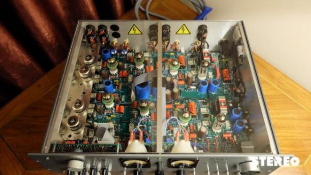 Ampli đèn Mastersound Dueventi S.E class A, mỗi bên sử dụng 2 bóng khuếch đại công suất EL34/ 6CA7.