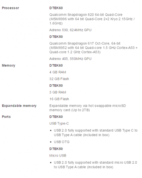 Trang web BlackBerry vừa đưa ra thông số kỹ thuật của chiếc DTEK60. Cụ thể, đây là chiếc smartphone đầu tiên có cảm biến vân tay của “Dâu đen”. Máy có màn hình 5.5 inch độ phân giải 1.440 x 2.560 và không có bàn phím vật lý. DTEK 60 được trang bị chip Snapdragon 820, 4GB RAM và 32GB bộ nhớ trong.