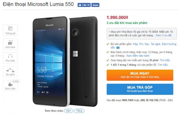 Theo lịch sử giá thì Lumia 550 đã có 2 lần thay đổi: Từ 2.9 triệu giảm xuống 2.7 triệu và giờ giảm xuống mốc 1.99 triệu. Đây là mứckhá hợp lý cho bạn nào muốn trải nghiệm sự nhẹ nhàng của hệ điều hành Windows 10 Mobile.