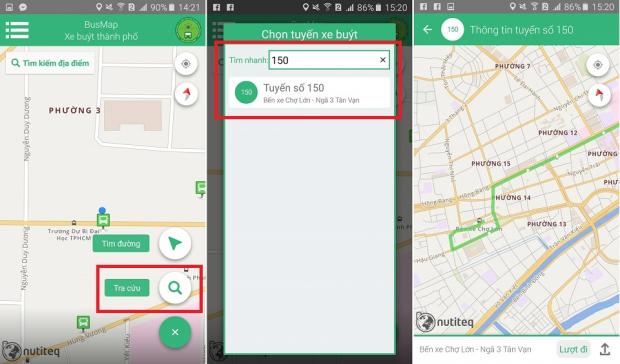 Vào biểu tượng dấu Cộng (+) phía góc phải, chọn phần Tra cứu, tại thanh tìm kiếm nhập số xe mà bạn muốn. Ví dụ chọn 150, bản đồ tuyến đường của xe 150 sẽ hiện lên. Rất đơn giản phải không?.