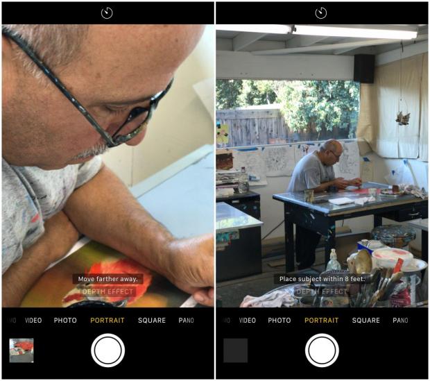 iPhone sẽ nhắc bạn khoảng cách thích hợp để chụp xóa phôngKhi chụp, Portrait cũng giống với các chế độ khác và có thêm công cụ Tap to Focus để xác định điểm lấy nét. Một tính năng hữu ích khác là bạn xem được hiệu ứng xóa phông trước khi chụp. Để chụp được một tấm ảnh đẹp, điều kiện ánh sáng và chủ thể đứng yên là hai điều kiện cần thiết.
