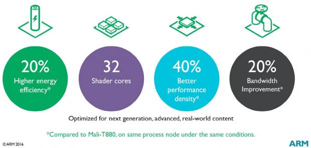 Mali-G71 sử dụng quy trình 16nm sẽ chạy ở tốc độ 850 MHz, khả năng xử lý lên tới 27.2Gpix/s, gấp đôi so với Mali-T880 khi chạy ở cùng một xung nhịp. Rất có thể Galaxy S8 vào năm sau sẽ sử dụng màn hình 4K, hỗ trợ một loại kính thực tế ảo tốt hơn.