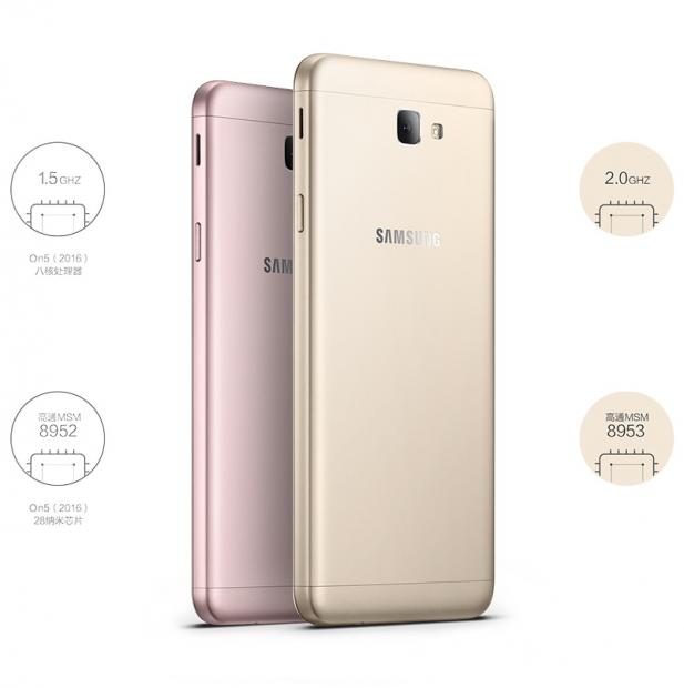 Thay vì được giới thiệu chi tiết như Galaxy On7 2016 thì 'đàn em' Galaxy On5 2016 chỉ lặng lẽ xuất hiện trên trang web của Samsung, qua đó xác nhận sản phẩm trang bị vi xử lý Snapdragon 617, bên cạnh đó là thiết kế với lớp vỏ kim loại, ngoài ra hãng không giới thiệu thêm các thông tin khác.