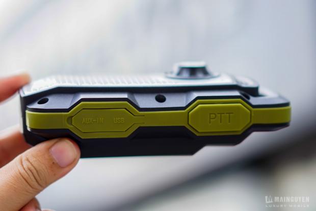 Bên cạnh phải sẽ là nơi chứa nút PTT (Push To Talk) là kí hiệu khi mà bạn muốn đàm thoại thì sẽ nhấn vào để nói, phía dưới là nắp đậy của các cổng kết nối.