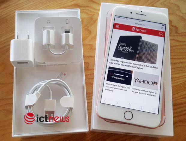 Theo anh Công Thành, chủ cửa hàng chuyên làm dịch vụ unlock iPhone tại phố Trương Định, chiếc iPhone 7 Plus này có dung lượng 32GB (dung lượng thấp nhất so với 2 bản còn lại là 128GB và 256GB), được một cá nhân mua từ Mỹ mang về Hà Nội.