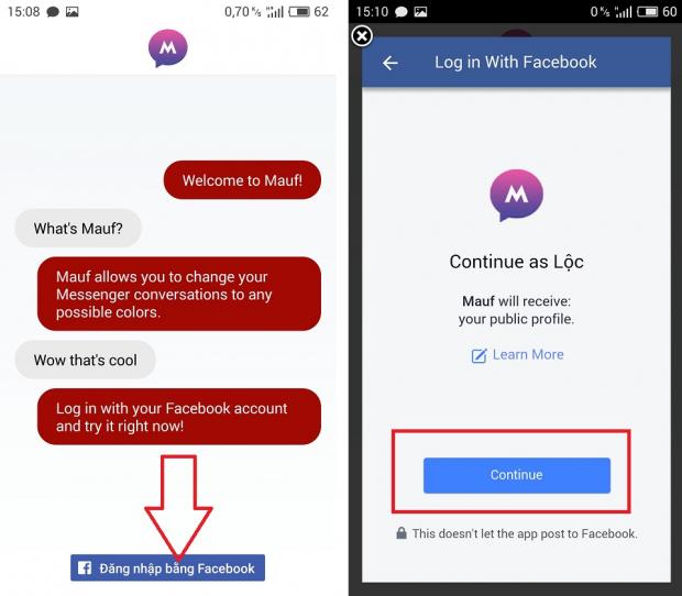 Để có thể thực hiện được công cuộc “tô đen” Messenger chúng ta cần tìm và cài đặt ứng dụng có tên Mauf trên CH Play. Hoặc tải tại link này. Ứng dụng Mauf có các tính năng nổi bật như: