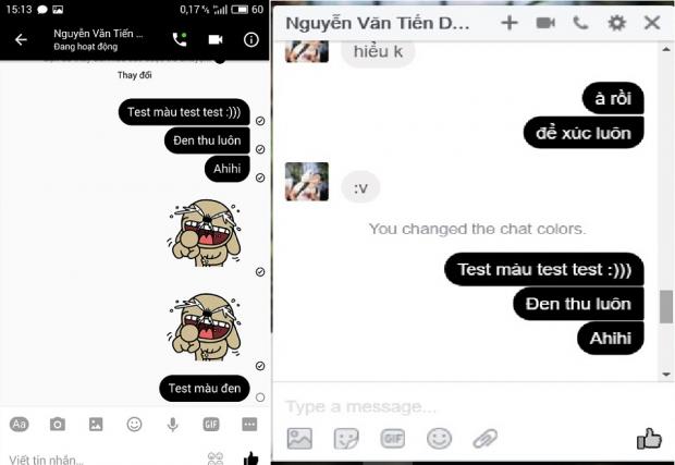 Kết quả: Facebook Messenger trên di động và web đã đổi màu đen