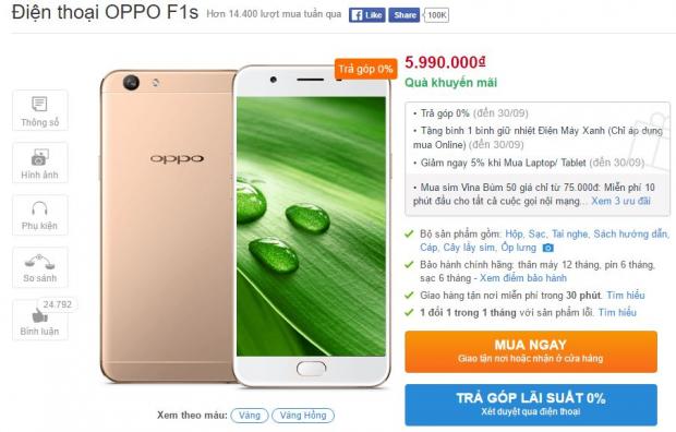 Cụ thể, theo thống kê của trang bán lẻ trực tuyến Thế giới di động thì trong tuần vừa qua OPPO F1s đã có doanh số lên tới 14.400 chiếc, tiếp tục đững vững vị trí đầu bảng sau nhiều tuần lên kệ, tuần trước con số này là trên 16 ngàn chiếc.