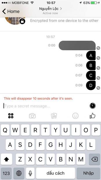 Như các bạn đã thấy, bên cạnh mỗi tin nhắn sẽ hiển thị thời gian đếm ngược đến lúc tin nhắn ấy tự hủy.