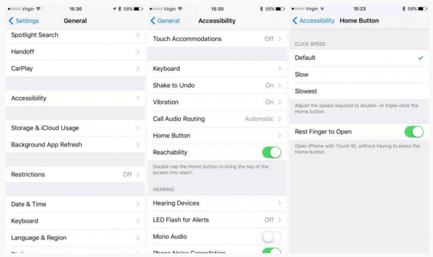 Cách mở khóa 2 bước mởi của Apple nhận được rất nhiều phản ảnh của người dùng vì sự bất tiện của nó. Tuy nhiên, nếu bạn vẫn muốn mở thiết bị một chạm như iOS 9, có thể sử dụng tính năng “Rest Finger to Open” để chạm vào Touch ID đã được cài đặt trước để mở khóa nhanh.