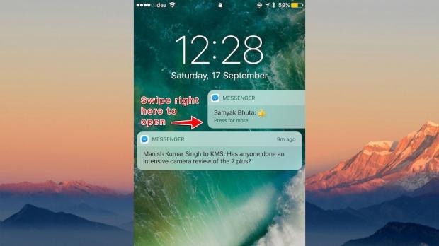 Thông báo trên iOS 10 có thể hiển thị nội dung trực tiếp trên màn hình khóa. Để mở, bạn chỉ cần trượt một thông báo sang phải màn hình.