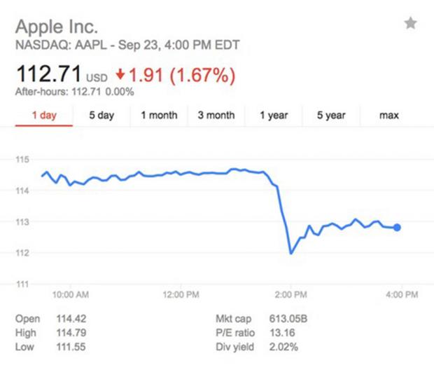 Thông tin này lập tức ảnh hưởng tới Apple khi trước đó, CEO Tim Cook vẫn tự tin về doanh số iPhone mới. Cổ phiếu của hãng sau đó đã giảm mạnh, có thời điểm gần 2%, nhưng đã tăng nhẹ trở lại.
