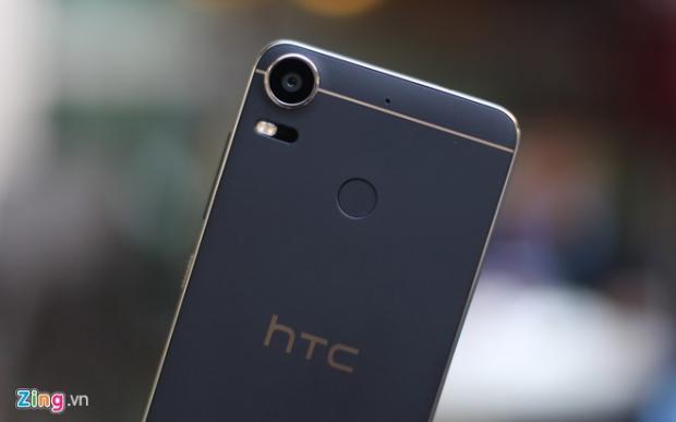 Máy ảnh 20 MP lồi lên khá cao so với thân máy, đèn flash kép nằm ngay bên dưới. HTC đặt cảm biến vân tay ở mặt lưng, thay vì phím Home như các model trước đó.